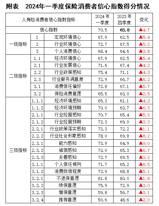 【指數成果】2024年一季度中國保險消費者信心指數70.9